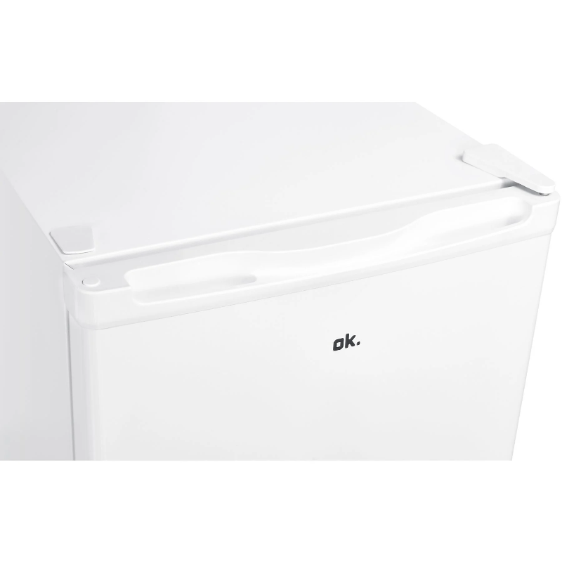 Frigorífico tipo table top de la marca OK, referencia de modelo OFK 061 E W. Capacidad declarada del compartimento de refrigeración: 41 L. Ancho declarado del aparato: 51 cm. Denominación “table top” correspondiente a una configuración de instalación de sobremesa, destinada a colocación sobre una superficie horizontal o en un hueco con el mismo ancho. Electrodoméstico destinado a la conservación refrigerada de alimentos y bebidas mediante un compartimento interno de frío. La capacidad se indica en litros (L) y el ancho en centímetros (cm) según la especificación del producto; la identificación del modelo se realiza mediante el código OFK 061 E W y la denominación comercial asociada.