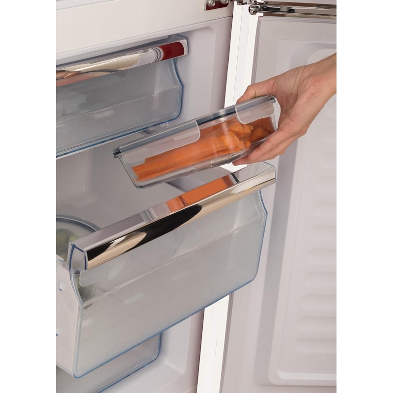 Frigorífico combinado CREATE STYLANCE con capacidad total declarada de 244 L. Integra un compartimento de refrigeración y un compartimento de congelación en el mismo aparato para la conservación de alimentos mediante frío. Potencia eléctrica nominal: 90 W. Clasificación energética: E, según la etiqueta energética de la Unión Europea. Funciona con alimentación a red eléctrica; el consumo puede variar según la temperatura ambiente, la frecuencia de apertura de puertas y la carga de alimentos. Los valores de capacidad y potencia corresponden a las especificaciones del fabricante para este modelo. La distribución de volumen entre compartimentos y otros datos técnicos (como nivel sonoro, tipo de desescarche o refrigerante) se determinan mediante la documentación técnica del producto.