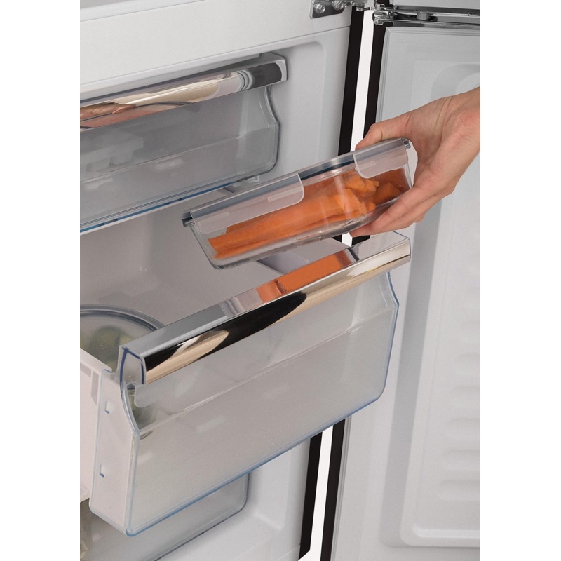Frigorífico combinado CREATE STYLANCE con dos compartimentos independientes: frigorífico y congelador, destinado a la refrigeración y congelación de alimentos. Capacidad total de 244 L. Potencia nominal de 90 W. Clasificación energética E согласно la etiqueta energética de la Unión Europea. Diseño de tipo combinado en un solo cuerpo, con puertas separadas para cada compartimento. Equipo eléctrico de conservación de alimentos con funcionamiento mediante red eléctrica.