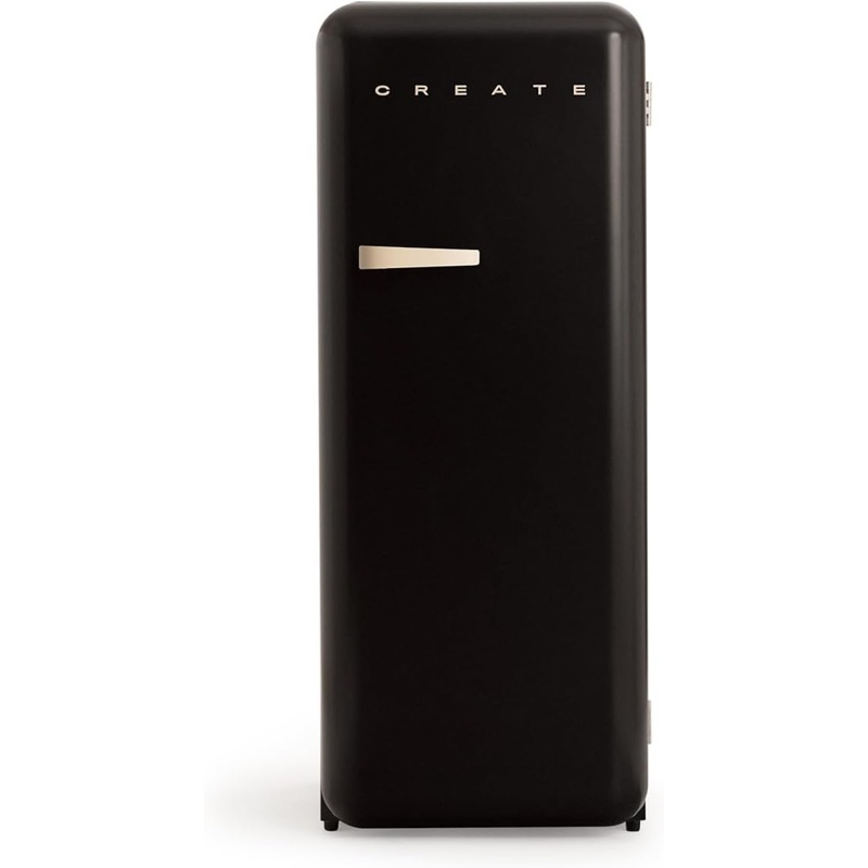 Frigorífico combi CREATE, modelo RETRO FRIDGE 150, con capacidad total de 281 L. Configuración frigorífico-congelador en un solo aparato, con compartimento de refrigeración y compartimento de congelación. Potencia nominal: 102 W. Clase de eficiencia energética: D, según el etiquetado energético de la Unión Europea. Apertura mediante maneta. Uso previsto: conservación de alimentos y bebidas mediante refrigeración y congelación.