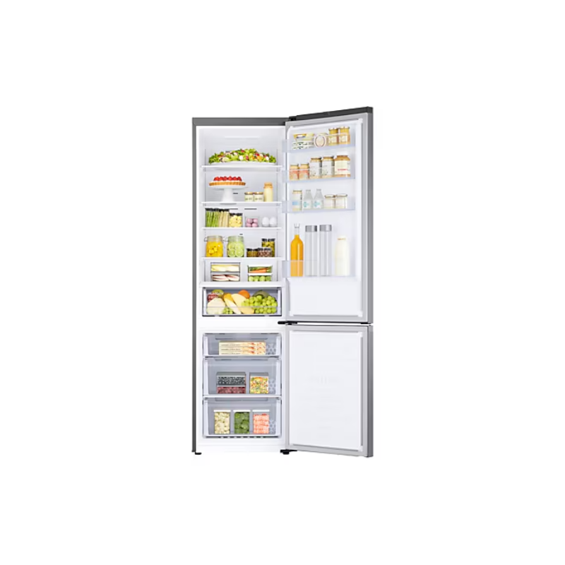 Frigorífico combi Samsung RB38C600CS9/EF con capacidad total nominal de 390 L. Incluye tecnología No Frost, un sistema de refrigeración por circulación de aire que integra ciclos automáticos de descongelación para la gestión de la escarcha en los compartimentos. Formato combi con zona de refrigeración y zona de congelación en un mismo equipo. Diseñado para la conservación de alimentos a temperaturas de refrigeración y congelación, con almacenamiento distribuido entre ambos compartimentos. La capacidad indicada corresponde al volumen total declarado por el fabricante para este modelo.