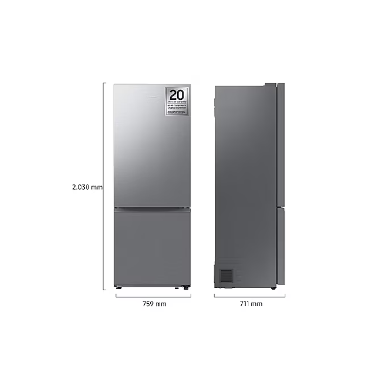 Frigorífico combi Samsung RB53DG703DS9EF con capacidad total de 538 L y altura de 2 m. Equipo de refrigeración con dos compartimentos independientes para refrigeración y congelación. Incorpora sistema No Frost (desescarche automático) en los compartimentos, sin necesidad de descongelación manual. El funcionamiento se gestiona mediante controles de temperatura para ajustar los niveles de frío en el interior. La estructura integra puertas independientes para acceso a cada compartimento y zonas de almacenamiento internas destinadas a alimentos y envases. Producto identificado por referencia RB53DG703DS9EF para compatibilidad de recambios y documentación del fabricante.