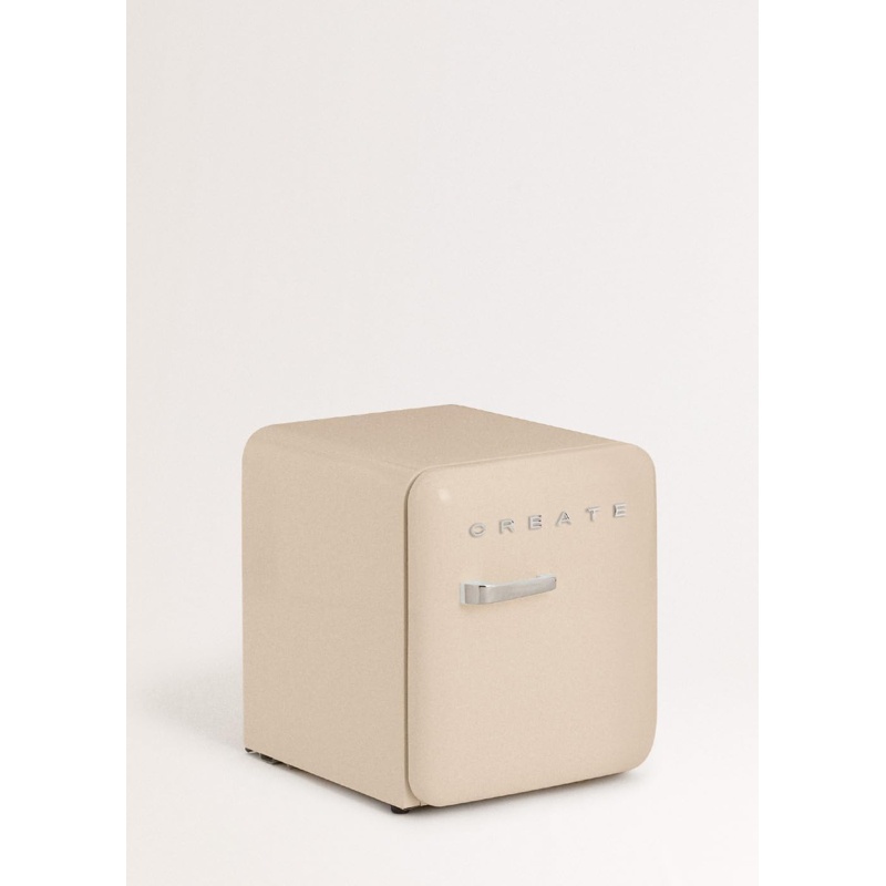 CREATE Frigorífico RETRO FRIDGE 50, refrigerador eléctrico para conservación de alimentos y bebidas mediante refrigeración. Capacidad de 48 L. Clase de eficiencia energética F según el etiquetado energético aplicable en la UE. Nivel sonoro de 39 dB. El producto pertenece a la gama RETRO FRIDGE 50 de CREATE e integra una puerta con maneta. Uso previsto: almacenamiento refrigerado dentro del volumen disponible, con funcionamiento conectado a la red eléctrica. La información técnica indicada para este modelo incluye consumo clasificado en clase F y emisión acústica declarada de 39 dB, con medición expresada en decibelios.