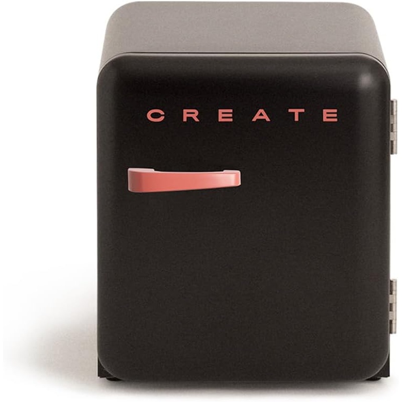 Frigorífico CREATE modelo RETRO FRIDGE 50 con capacidad total de 48 L para almacenamiento en refrigeración. Clasificación de eficiencia energética F según el etiquetado energético de la UE (escala A–G). Emisión sonora declarada de 39 dB. Diseño con puerta y maneta incorporada, según la denominación del producto. Equipo destinado a la conservación de alimentos y bebidas a temperatura de refrigeración. La identificación comercial incluye las referencias “RETRO FRIDGE 50”, “48 L”, “Clase energética F” y “39 dB”, que corresponden a los datos técnicos principales del modelo.