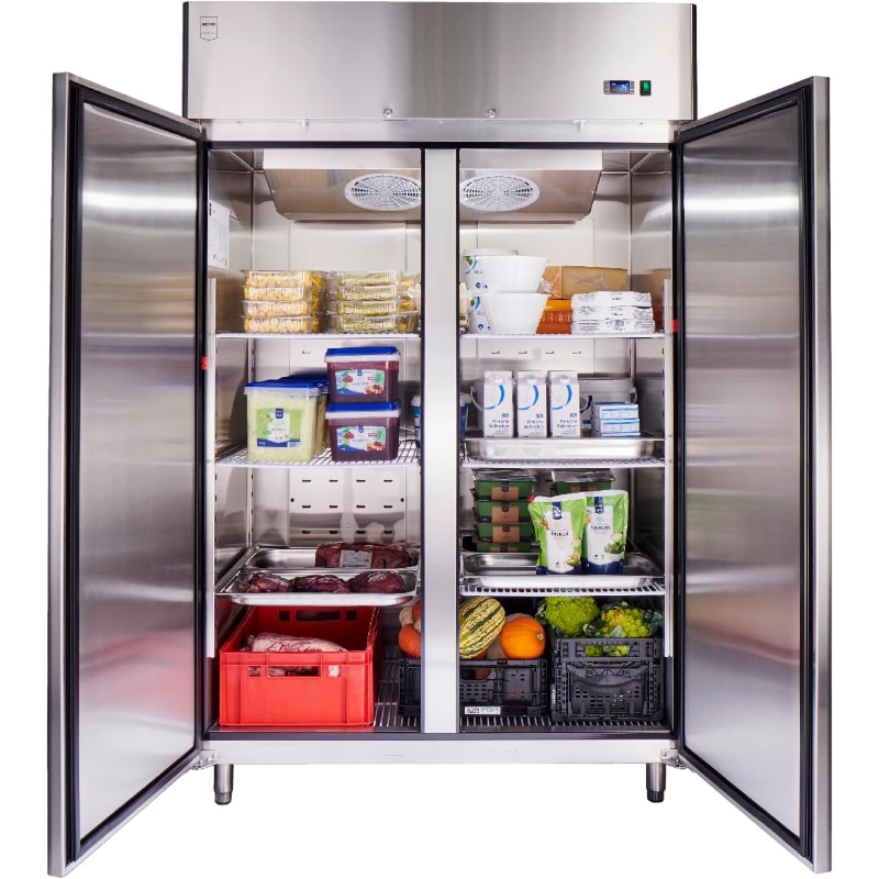 Frigorífico METRO Professional GRE1400 con capacidad nominal de 940 L. Equipo de refrigeración destinado a almacenamiento en frío. El producto se identifica por la referencia GRE1400 y por la marca METRO Professional. La denominación del artículo indica construcción en acero inoxidable. La capacidad está expresada en litros como volumen interno. Para la instalación y el funcionamiento se aplican las especificaciones del fabricante del modelo, como rango de temperatura de trabajo, tipo de refrigerante, consumo energético, potencia, nivel sonoro, tipo de control, número de puertas, configuración interior, estantes y accesorios incluidos según versión y suministro.